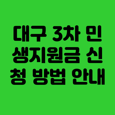 - 대구 3차 민생지원금은 시민들의 경제적 안정과 지역 경제 활성화를 목표로 하며, 온라인과 오프라인으로 편리하게 신청할 수 있습니다.